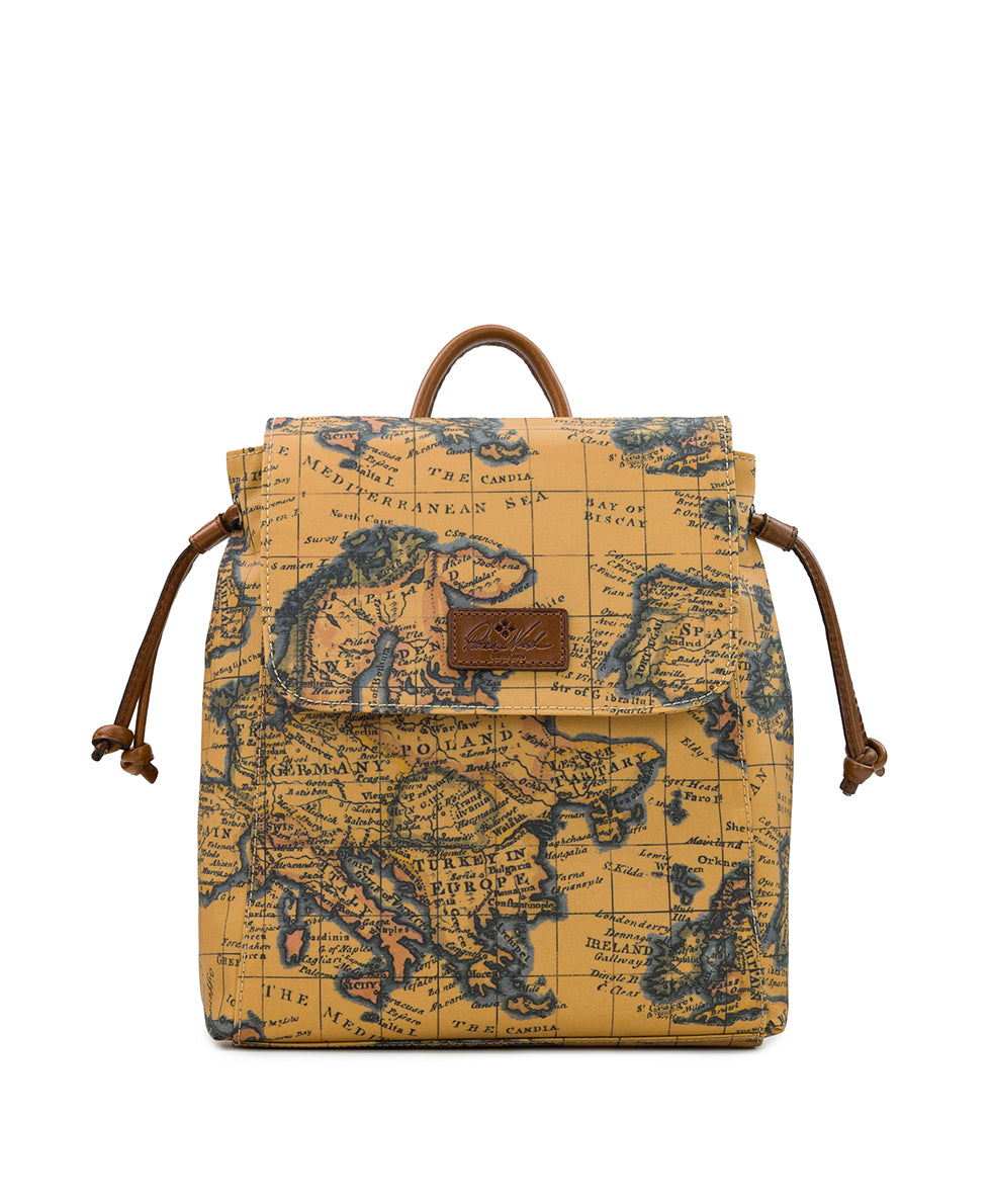 Arino Backpack Patina Coated Linen Canvas European Map Print