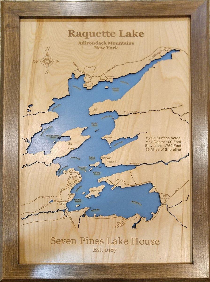Raquette Lake, New York, laser cut wood map| Personal Handcrafted